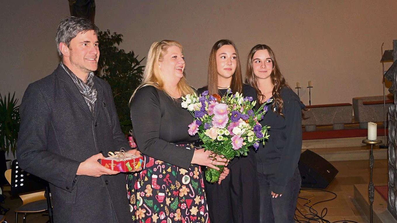 Mit Blumen bescherten zwei Chormitglieder und Peter Kiener die Chorleiterin Claudia Kronschnabl mit einem Präsent.